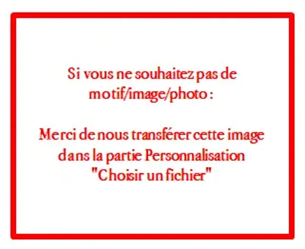 Votre photo ou image ** si vous ne souhaitez pas de motif, merci de nous transférer une photo comportant l'inscription "PAS DE MOTIF/IMAGE/PHOTO" ou le fichier conçu pour à la fin du descriptif photos **